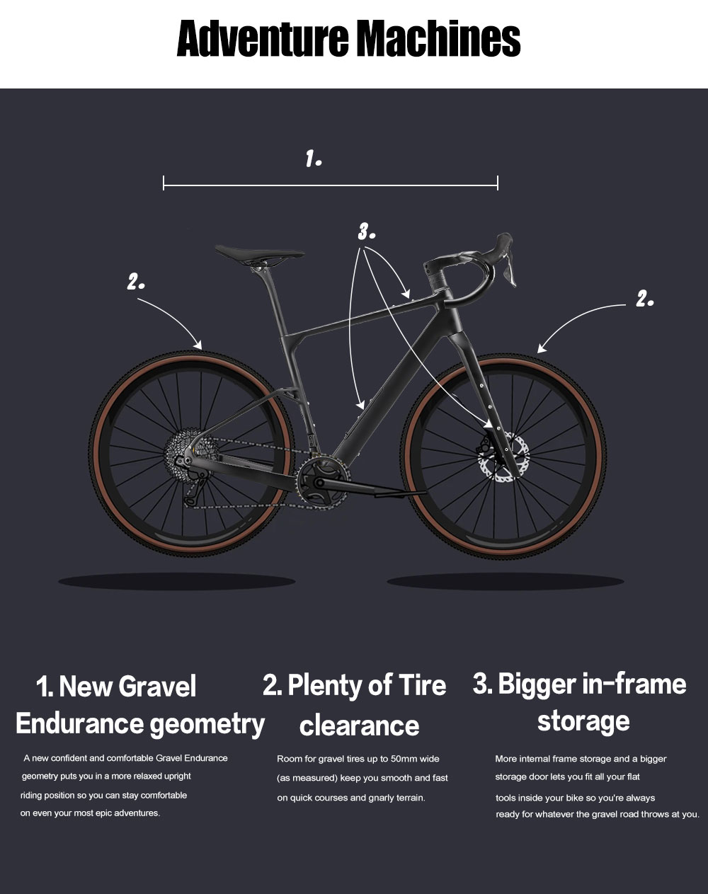 | Content | AIRWOLF YFR003 Pearl White Carbon Gravel Frame Disc Brake Bike Frameset 700*50C Max Tire XS/S/M/L/XL